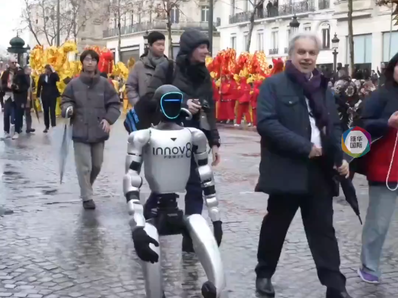 中国机器人亮相巴黎香街 挥手互动氛围感拉满