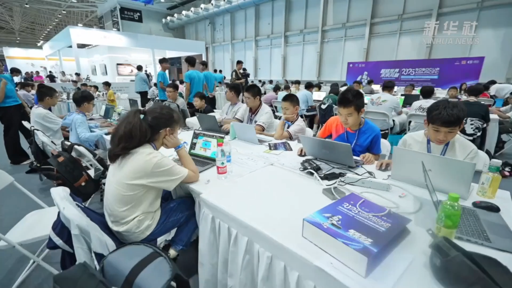 走进青岛世界博览城S4馆,一场由Booster人形机器人进行的足球赛吸引众多观众驻足观看。这些“球员”踢球的动作略显呆萌,却生动展示了机器人技术的进展。