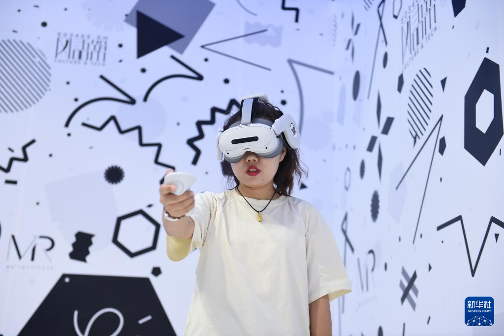 9月11日,参展者在文旅服务专题展区海淀展厅体验沉浸式VR大空间项目。新华社记者 刘岭逸 摄