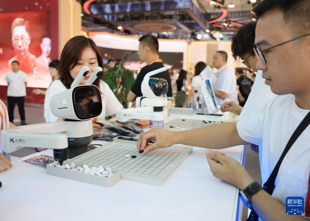 9月11日,一款下棋机器人在文旅服务专题展区与参观者对弈。新华社记者 张晨霖 摄