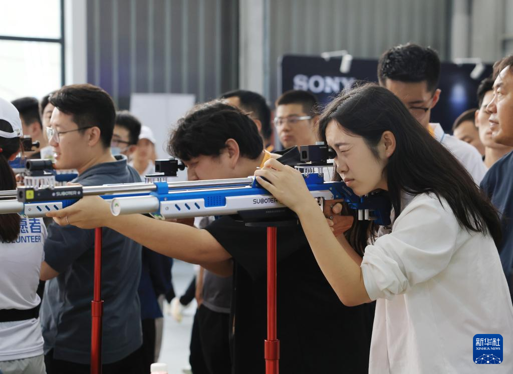 9月11日,参观者在体育服务专题展区体验激光射击。新华社记者 张晨霖 摄