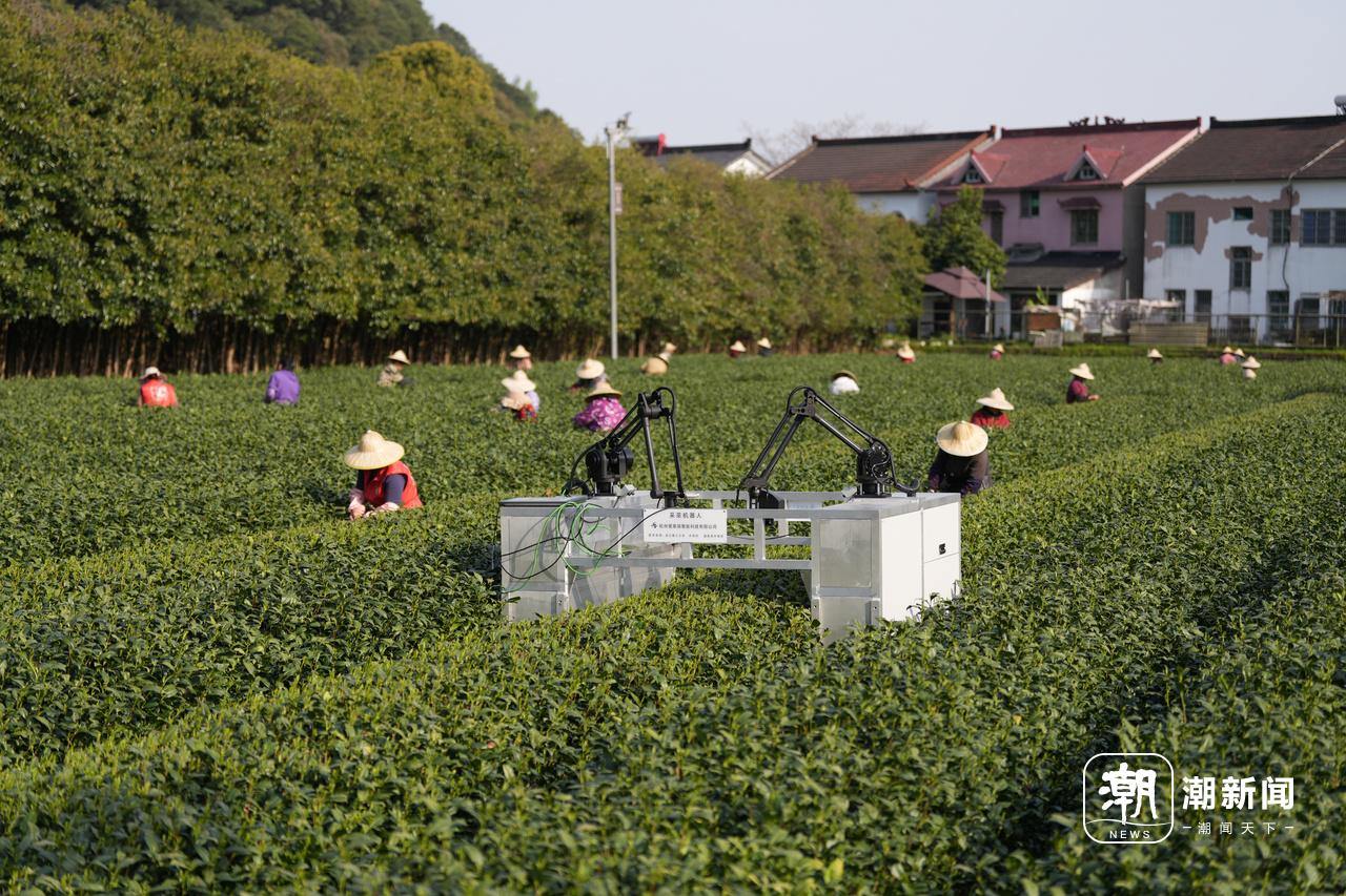 清明前夕,杭城茶香四溢,杭州梅家坞附近的茶园里,一片繁忙景象。采茶工人们穿梭在茶树间,指尖灵动,采撷着春日的鲜嫩。而在这其中,一个特殊的“采茶小工”吸引了众人目光——浙江理工大学最新研发的智能采茶机器人。