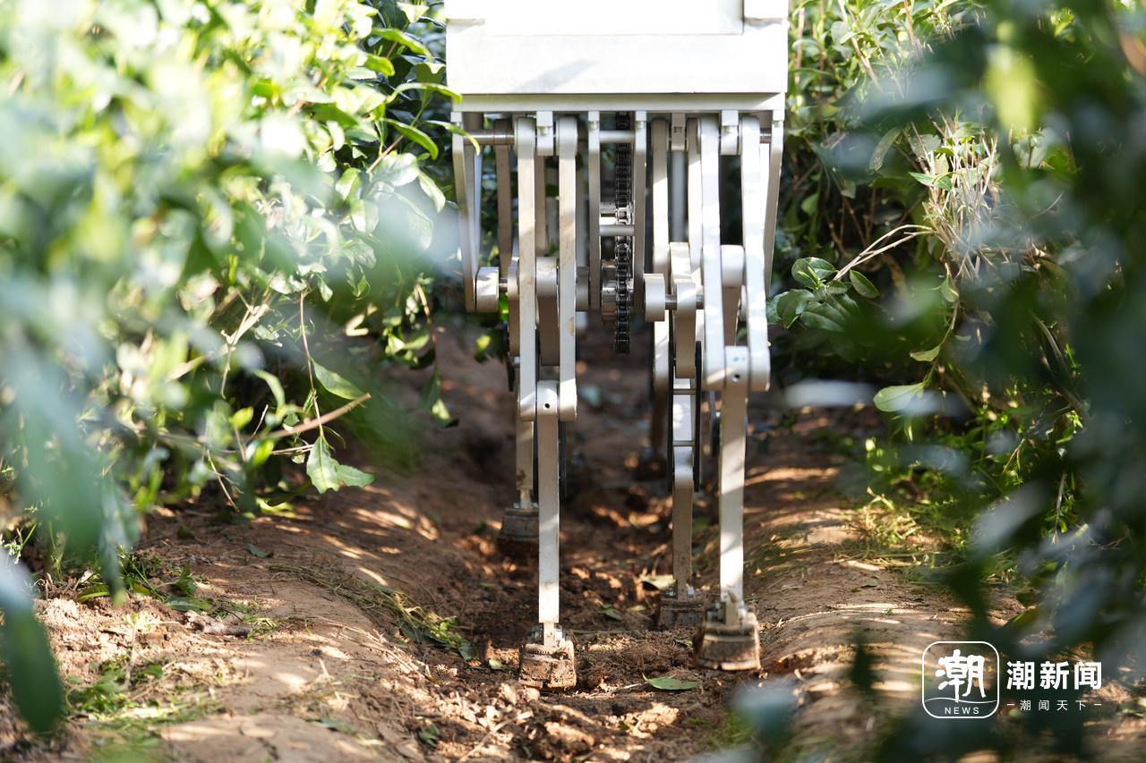 采茶机器人利用四足机械腿在茶园里穿梭。记者 周旭辉 摄