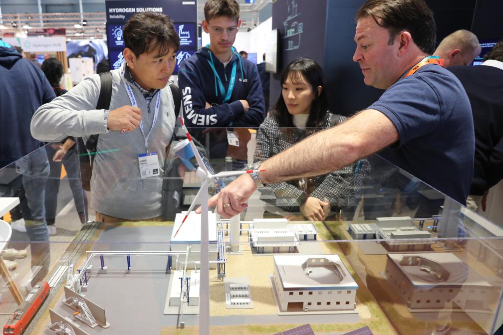 2025年3月31日,在德国汉诺威工业博览会上,人们参观德国西门子集团展区。新华社记者杜哲宇摄